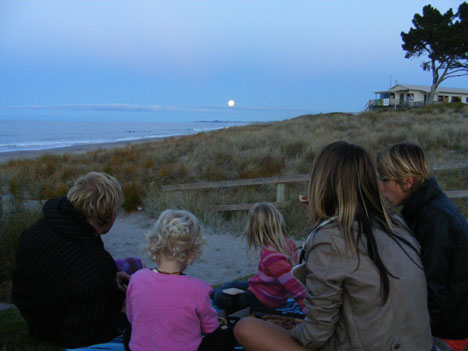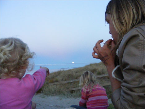 The Parkes family watch as the supermoon rises from the beach. By Caroline Parkes.