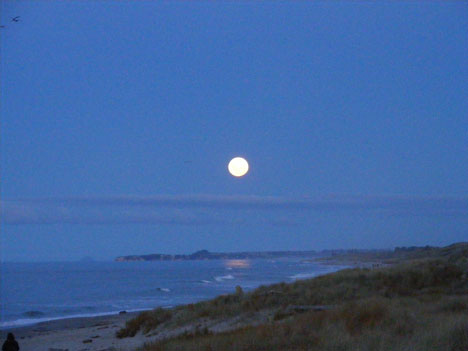 Supermoon from Arataki Beach towards Maketu. By Seonie Inglis.