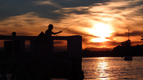 The sun setting across the other side of Mount Maunganui as the supermoon rises. By Michael Walker.