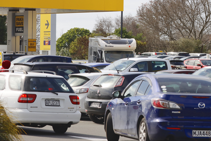 'No one's rushing (inside the supermarket). In Katikati they're right around the building. Oh yeah, people are crazy.”