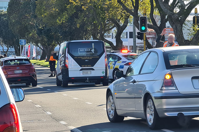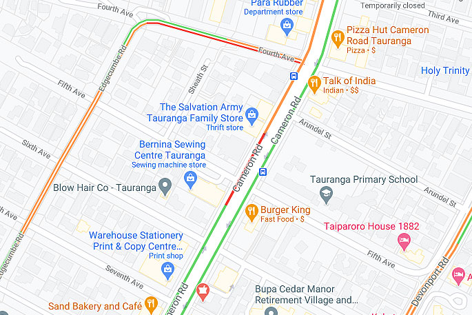 A caller to the 0800 SUNLIVE news hotline says traffic is stopped on Cameron Road, outside the Salvation Army.
