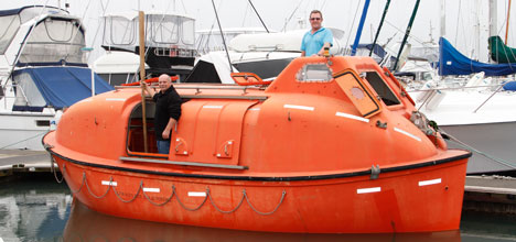The solid fibreglass lifeboat comes with all the original fixtures and fittings, including the emergency rations. It is powered by a three cylinder diesel and ‘chugs along' at about five knots.