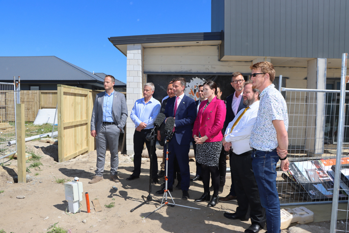 David Seymour announces his housing policy at a Barrett Homes construction site. Image: Daniel Hines/SunLive.