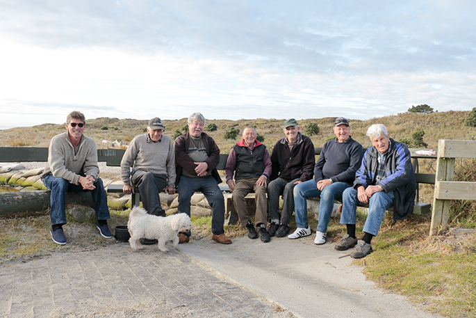 Paul Cameron, Gordon Peterken, Barry Harford, Hugh Jorgensen (Jorgy), Ray Smith, Graeme Williams, and Gary Thompson enjoying Fishermens Corner in 2017.