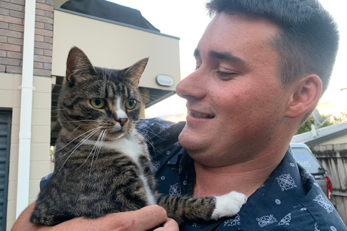 Daniel Hines with his cat Possum who was put safely into 'kitty lockdown' for a few hours indoors until after the New Year's Eve fireworks were over.