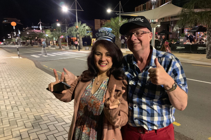 Bernadette and David Bridgens enjoying the downtown Tauranga vibe on The Strand.