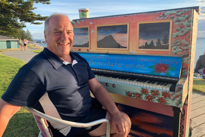 Welcome Bay Vet Clinic veterinarian John Drummond at the Mount Maunganui beach piano.