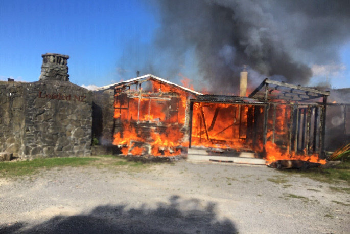 Loaded NZ, which offers clay shooting, knife throwing and archery, was engulfed in flames at 3:45pm on Sunday.