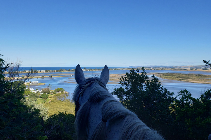 A woman circumnavigating New Zealand on horse-back is passing through the Bay of Plenty.