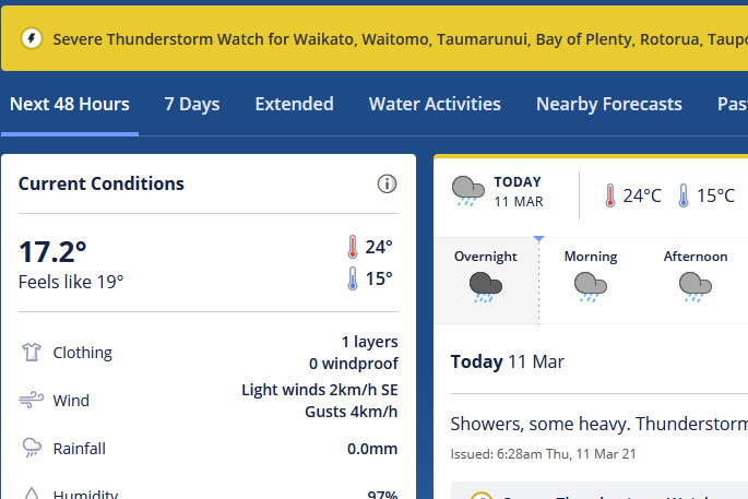 A severe thunderstorm watch is in place for the Bay of Plenty today.