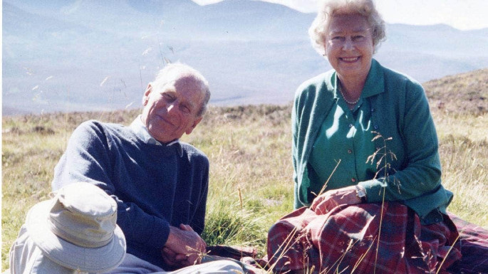 Ahead of the funeral, Buckingham Palace released a photo of the queen and Philip, smiling and relaxing on blankets in the grass in the Scottish Highlands in 2003. The palace said the casual photo was a favourite of the queen.