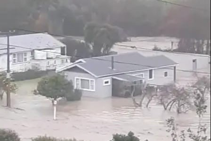 Sandra was in Gisborne when the storm hit over the weekend but was sent a photo of her house stranded in flood waters.