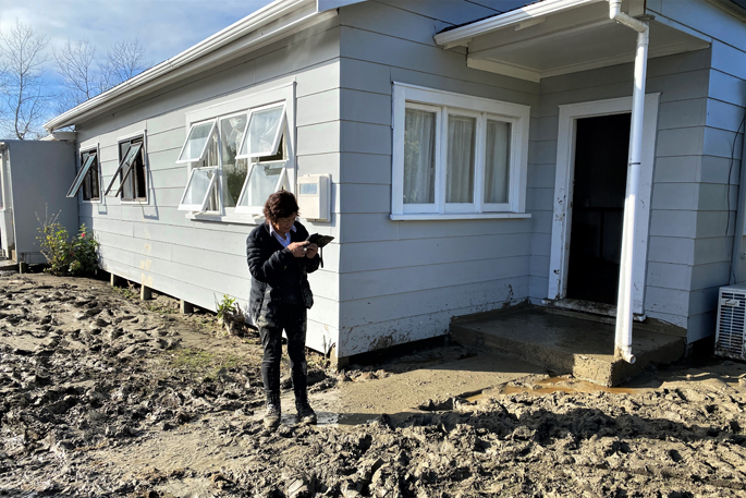 Rohatai Pewhairangi says her garage was flooded and the drainage system was overwhelmed but her house perched on a hill got away unscathed.