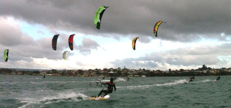 Tauranga Yacht and Power Boat Club is the first in the country to run a regular racing programme for kiters with the second round of racing featuring 10 kiters competing in three races over a windward/leeward course.