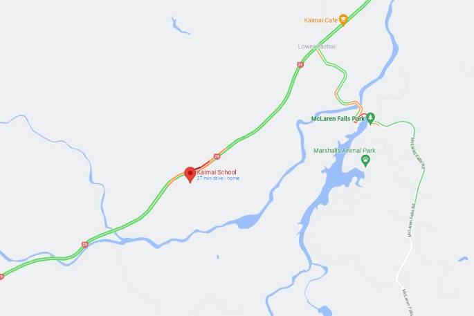 The crash on SH29 is near Kaimai School. Image. Google Maps.