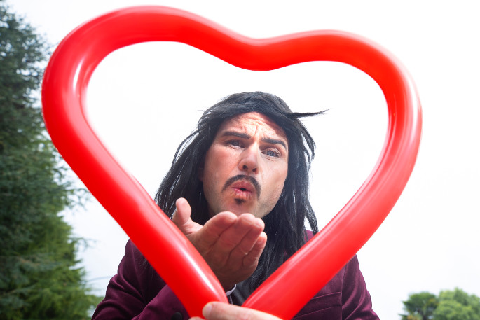 Rowan Ford Dawson as Julio the Latin Lover will be in Greerton Village on Valentines Day, Monday February 14. Photo: John Borren.