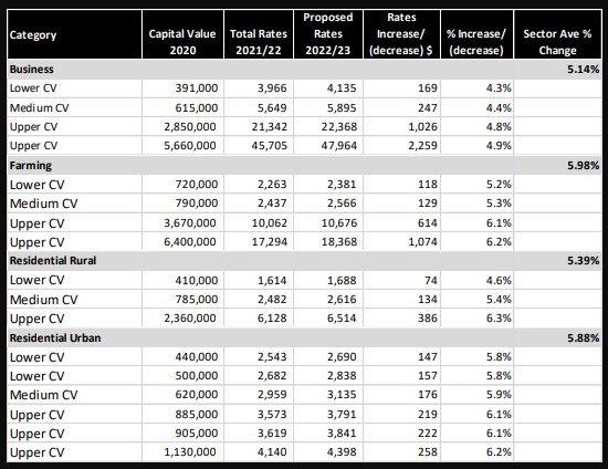 The business sector would see an average increase of 5.14 per cent; farming 5.98 per cent; rural residential 5.39 per cent; and urban residential 5.88 per cent.