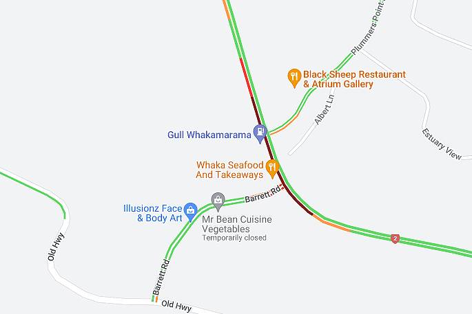 Google's live traffic reporting shows traffic is stalled on SH2, between Barrett and Youngson roads.