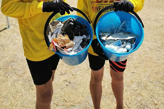 Young people taking part in a beach clean-up. Supplied photo.