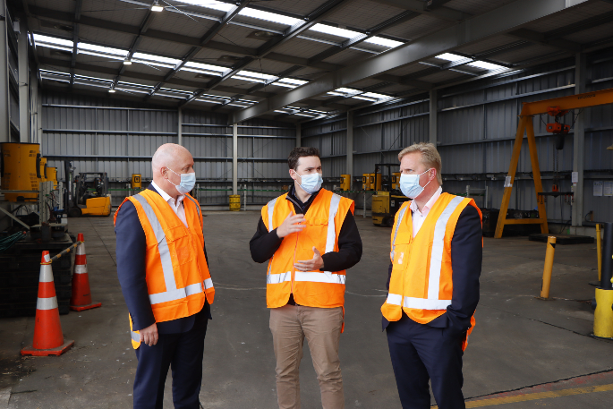 National Party leader Christopher Luxon, Seeka Harvest Operations Manager Paul Crone and Rotorua MP Todd McClay. Photo: Georgia Minkhorst/SunLive.