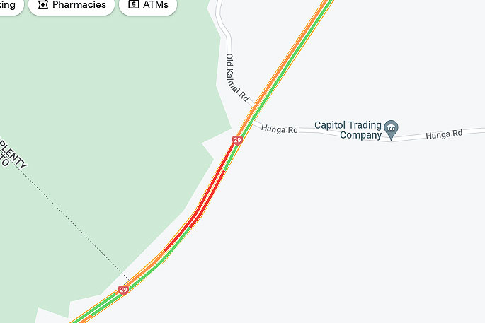 According to Google's Live Traffic reporting, traffic is stalled on the highway near Old Kaimai Road and Hanga Road.