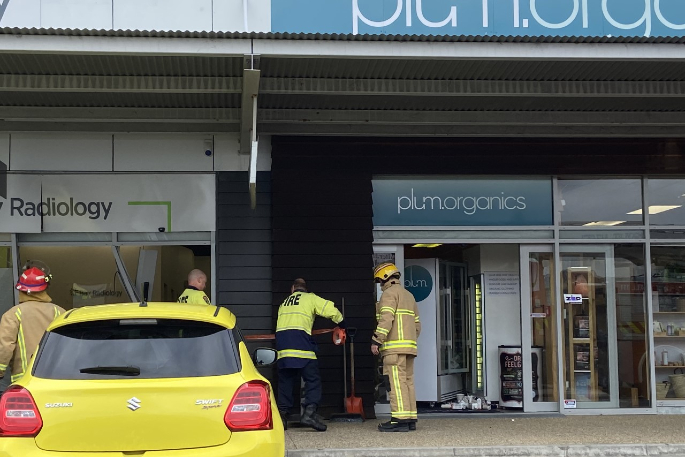 A car has reportedly crashed into a Pāpāmoa shopping centre this morning.