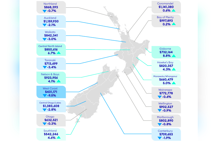 Spokesperson Vanessa Williams says prices have decreased by about $10,000 per month across the motu to $921,187 in September.
