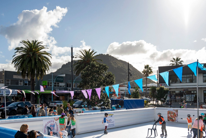 Mount Maunganui If you're in Mount Maunganui these holidays, you can hit the surf and the ice, with Mount Mainstreet putting up a pop-up ice rink at Papa o Ngā Manu Porotakataka from 11 – 15 October. It's only $5 for adults and $3 for kids for a 30-minute session.