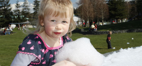 The bubbles were an instant hit with many children, who found great pleasure in scooping handfuls of the bubbles out of the fountain.