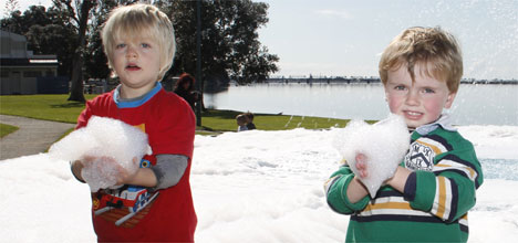Among the young bubble fans was three-year-old Tom Verran who says the bubbles were 'cool for standing on”.