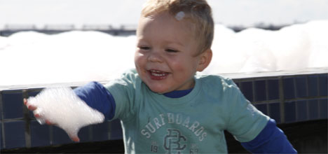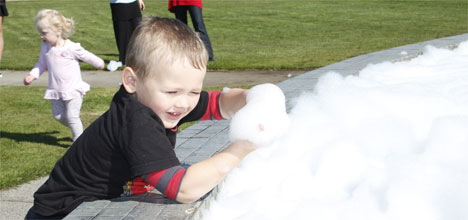 Tom Verran, 3, had no qualms in getting his hands into the bubbles. Photos by Tracy Hardy.