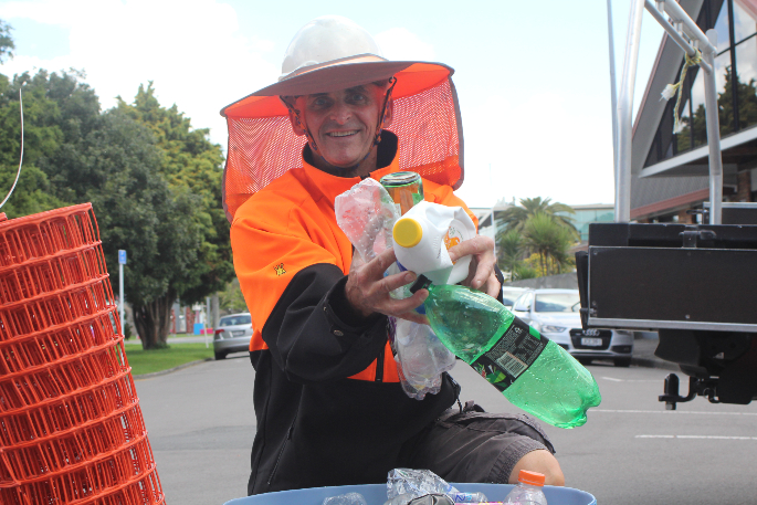 Mark Fogerty with his new found reusable materials. Photo: Taylor Rice/SunLive.