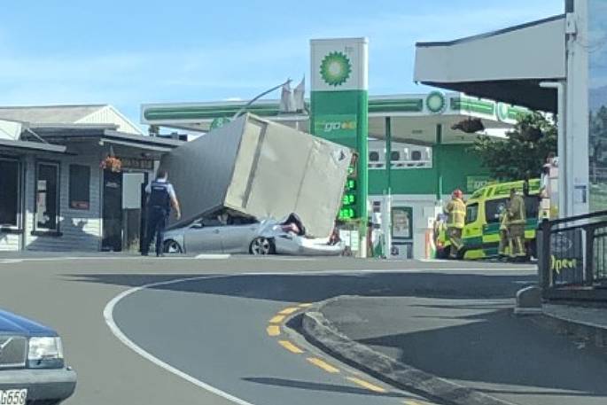 A post on the Bay of Plenty & Waikato Accidents Facebook page says the car was parked when the truck rolled on top of it.
