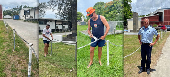 New Zealand Police Team Leader from the Solomon Islands Police Support Programme (SIPSP), Inspector Warwick McKee, has been spending his free time repairing and repainting the metal and chain fence at the Central Police Station Park in Honiara.