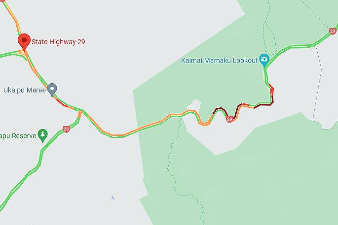 A map showing stalled traffic on SH29. Image: Google Maps.