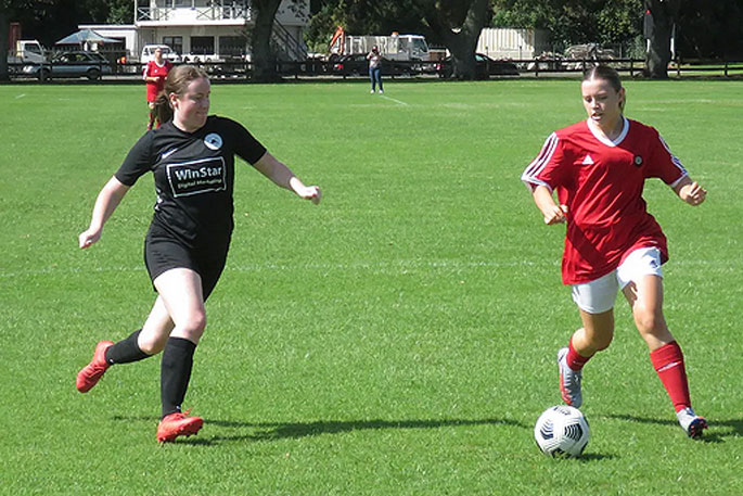 Reigning champions Whakatane Town edged out Te Puke United in Women's Bay 1 action. Photo credit: Te Puke United FC.