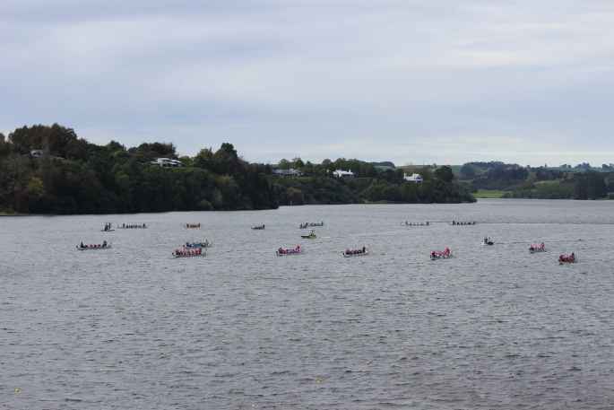 Dragon boats competing on Lake Karapiro. Photo: Supplied.
