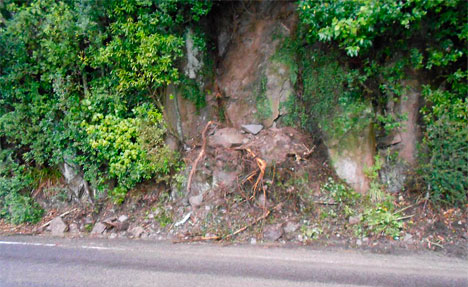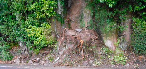 Brett says it is likely this will involve placing steel mesh and pinning of the remaining large boulders above the road.