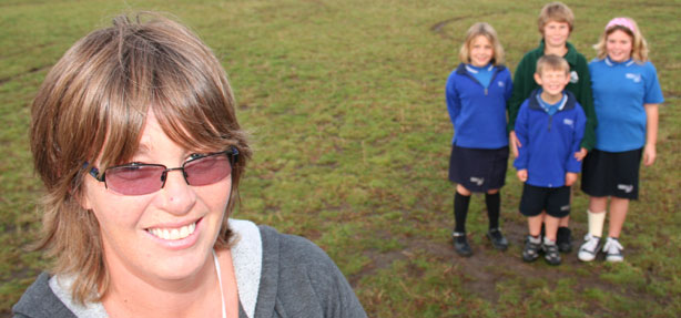 Papamoa resident Derrin Gordon with her children on the site construction will start later this year on Papamoa's second supermarket.
