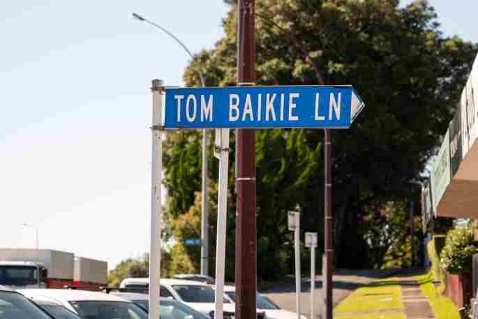 Tom Baikie Lane in Te Puke was named after him in 2003. Photo: Brydie Thompson.