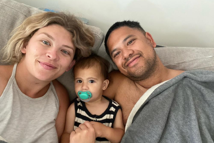An investigation into how Tere Livingstone was injured is underway. He's pictured with his partner, Chloe and young son Nikora. Photo: Supplied.