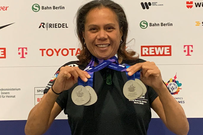Katikati powerlifter Caroline Tangitau won two silver medals at the 2023 World Summer Games in Berlin. Photo: supplied.