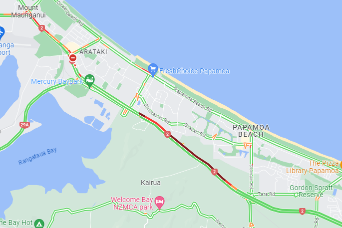 EARLIER 5.24pm: A crash has blocked the left lane of SH2 between Sandhurst Drive and Domain Road, Papamoa.