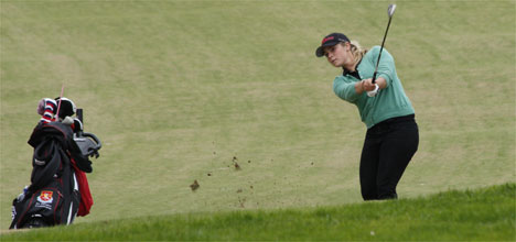 Riordan fired five birdies and an eagle while playing bogey-free golf in cool and overcast conditions, and shot a four under par score of 31 on a back nine, which included successive birdies on 11, 12 and 13.