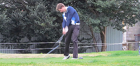 Mount Maunganui amateur Bradley Kendall crushing his drive on the par 5 sixth hole during the Carrus Tauranga Open $1000 shoot-out at the Tauranga Golf Club. Photo by Ben Guild.