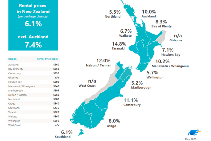Auckland rose $60 per week to $660 in May, claiming the title of the region with the highest median weekly rental price.