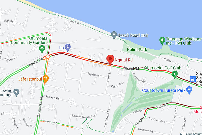 Traffic is backed up on Ngatai Road. Image: Google Maps.