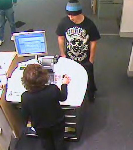 I didn't think you were aloowed to keep any hat/ beenie on when entering a bank... surprised they didn't ask him to remove it before attending to his request.