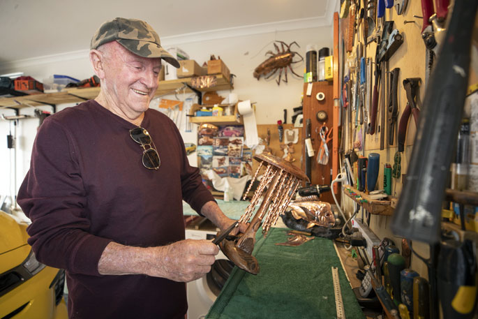 “My mum started me off. She used to do pewter work but I moved to copper. I like the shine of it. I’m a sheet metal worker and plumber by trade but I love coming up with ideas for what I can make with copper.”