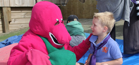 Bailey Eagle making good friends with Barney the Dinosaur.